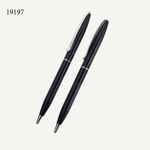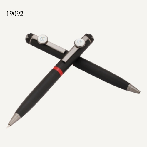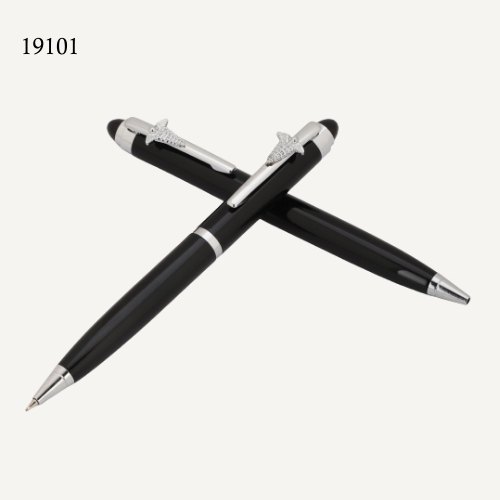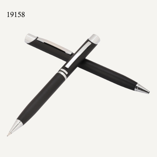 This timeless metal pen combines a black body with silver trim accents, offering a refined and versatile look suitable for corporate and formal settings.
