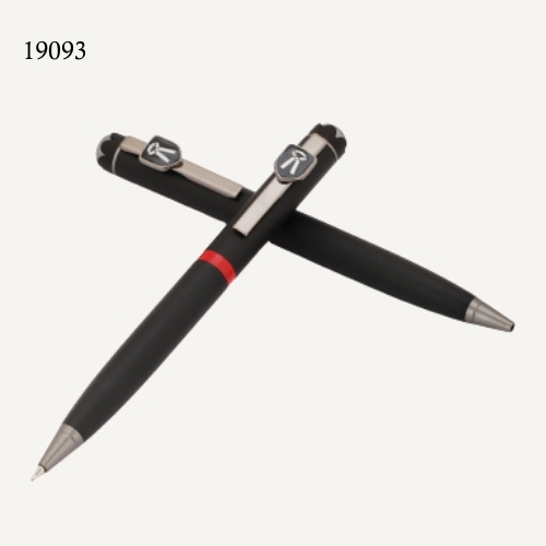 Designed with a matte black body and bold red accents, this pen delivers a modern and confident professional style.