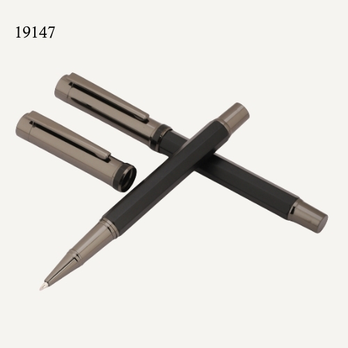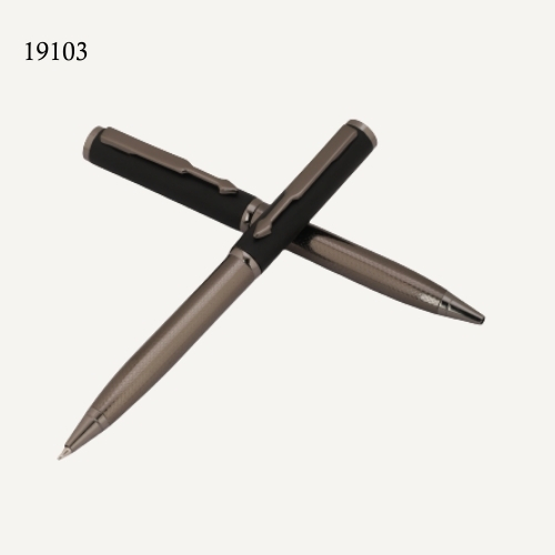 A refined metal pen featuring a gunmetal grey body paired with black accents for a modern executive look. Designed for professionals who prefer understated elegance in everyday writing tools.
