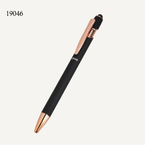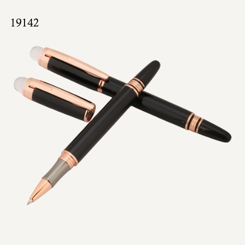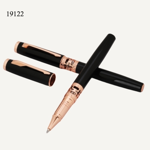 Featuring a bold black body enhanced with rose gold detailing, this pen offers a striking yet professional design suitable for premium branding and gifting.