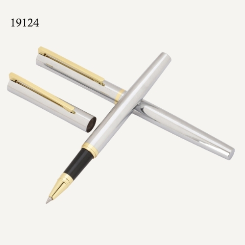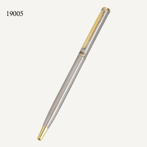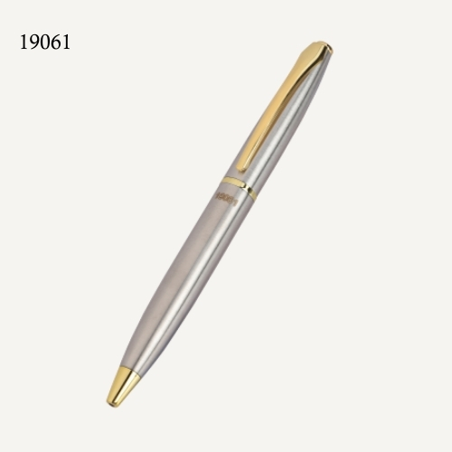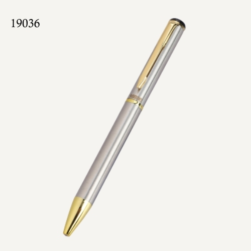 This elegant silver metal pen is enhanced with subtle gold accents, offering a polished and premium appearance. A perfect blend of simplicity and sophistication for formal use.