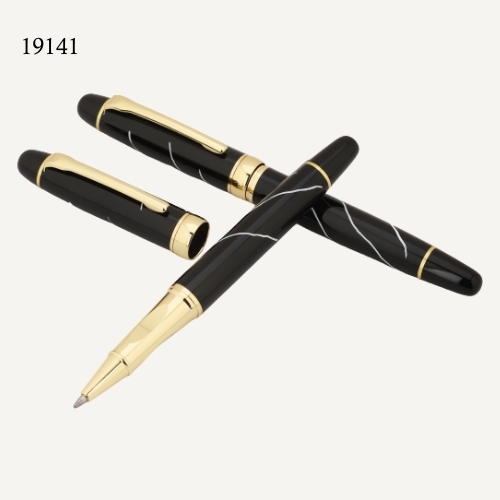 A premium black metal pen featuring subtle marble-style detailing and polished gold accents. Designed to elevate executive desks, corporate gifting, and professional branding.