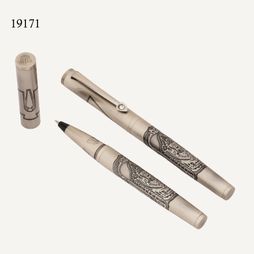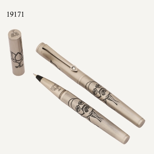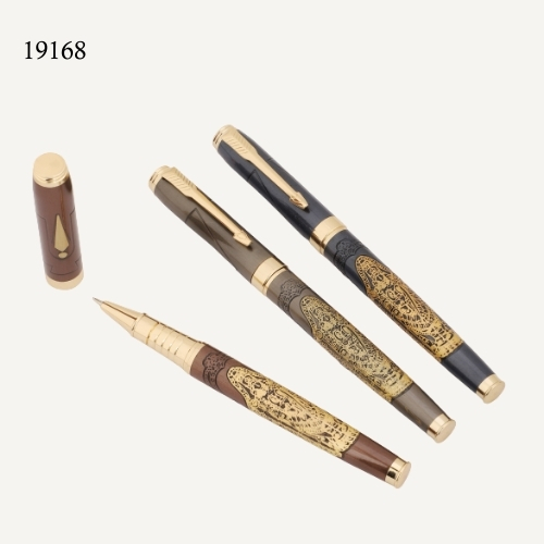 Crafted with intricate engraved patterns and a rich metallic finish, this pen offers a classic design that blends heritage aesthetics with modern elegance.