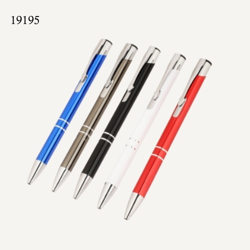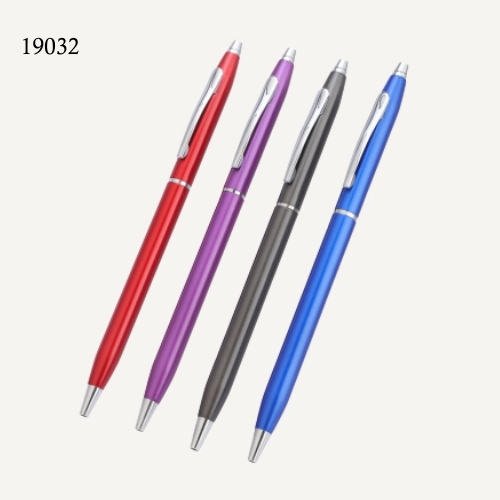 A sleek metal pen available in vibrant color options, designed to add a modern touch to professional writing. Ideal for branding, promotions, and everyday office use.