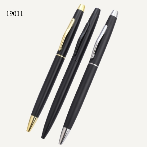 A refined matte black metal pen designed for professionals who prefer a clean and understated look. Its sleek finish and balanced build make it ideal for daily office use and corporate branding.