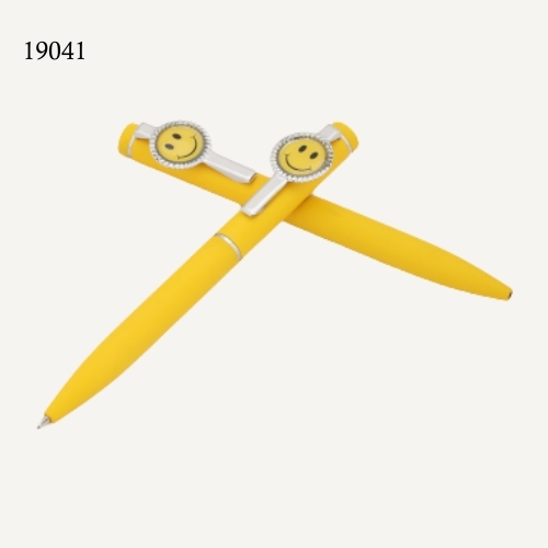A fun and eye-catching pen featuring a rotating smiley spinner, making it perfect for promotional and novelty use.