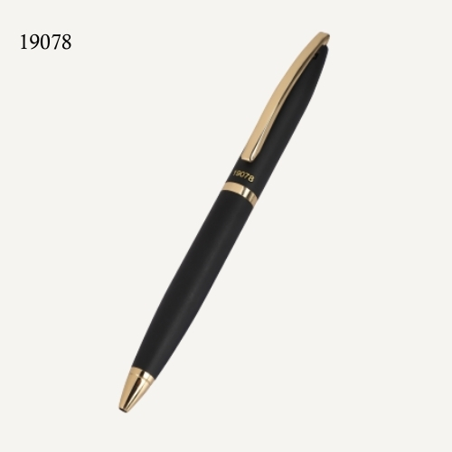 A timeless metal pen finished in deep black with rich gold accents, designed for a premium writing experience. Perfect for corporate gifting, executive desks, and everyday professional use.