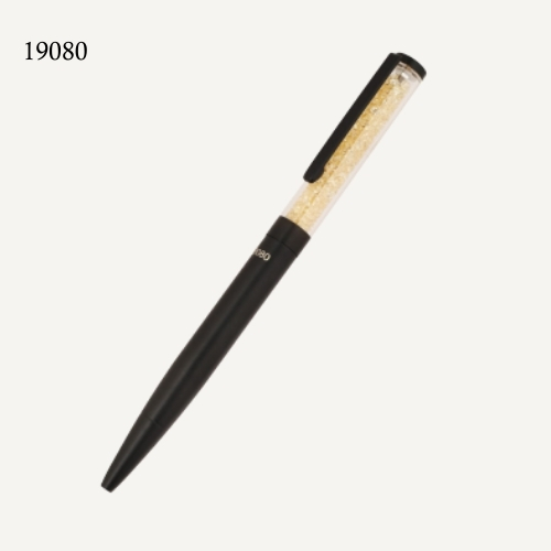 A premium black metal pen featuring a decorative crystal-filled section that adds a luxury touch. Perfect for standout corporate gifting