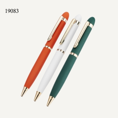 This metal pen features a soft-touch surface for comfortable handling and controlled writing. A stylish choice for offices, promotions, and corporate giveaways.